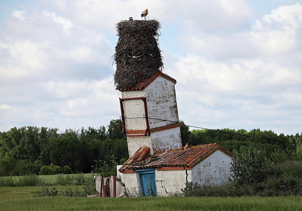 When the farmer from Burgos bought the farm in 2015, the building already existed, as well as the nests. The people of the area say that they have always remembered it there. It is true that it used to be smaller, but the storks have been adding to it every season. It is now an immense structure with three nests and a weight that exceeds a tonne. It's one of the largest stork nests on record.