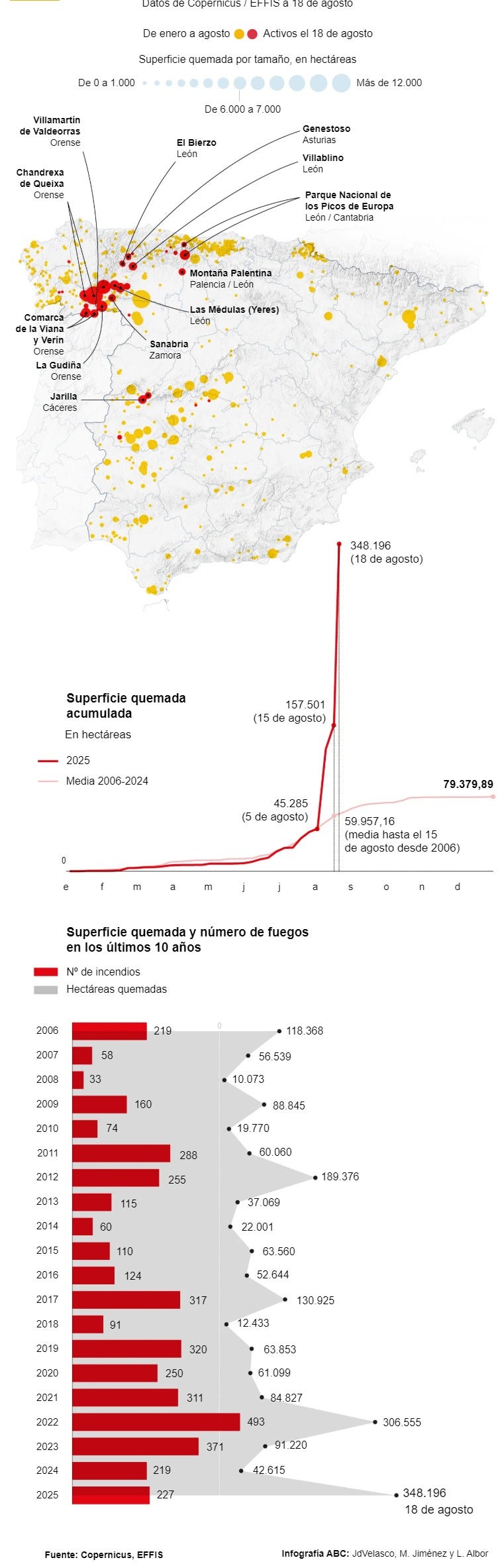 Map of wildfires in Spain: surface area burned this year is largest recorded in the last 30 years