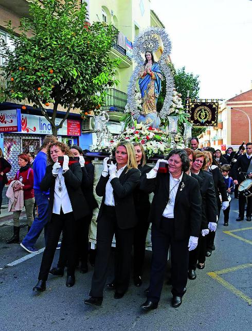 There are also processions in Arroyo de la Miel, where the women of the Rocío brotherhood process through the streets carrying a statue of Our Lady of the Immaculate Conception. She is also patron of Sierra de Yeguas, Alameda, Teba and Almargen.