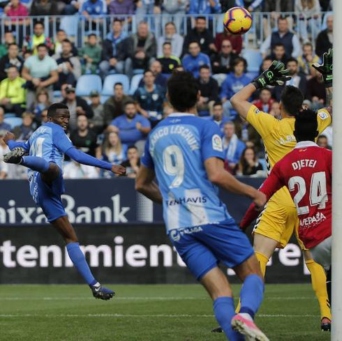 The Portuguese, chasing an overhit long pass, pressed Josua sufficiently to force him into an error, setting himself free down the right. Striker Mamadou Koné then peeled away at the back post and was found perfectly by the inch-perfect cross to head Malaga into the lead after 25 minutes.