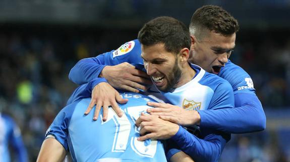The Scot's second-half diving header puts Malaga back in the automatic promotion spots
