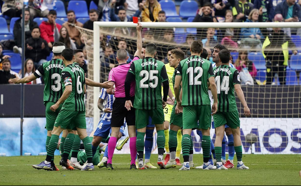 The Blue and Whites’ captain, Alberto Escassi, was sent off with fifteen minutes left in the first half, as he took out an Eibar player who was through on goal.