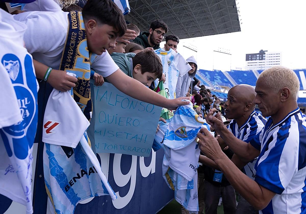 Dely Valdés acknowledged that “many beautiful memories came back to me when I saw [the shirt] again, and even more when I put it on and stepped onto the turf at La Rosaleda. The best place I’ve been is Malaga. I spent three very good years as a player, and the ‘Double D’ with Darío [Silva] was amazing. I also spent three years as a coach, assistant coach and with the reserve team. It is very nice to see how Darío and I are remembered in Malaga.”