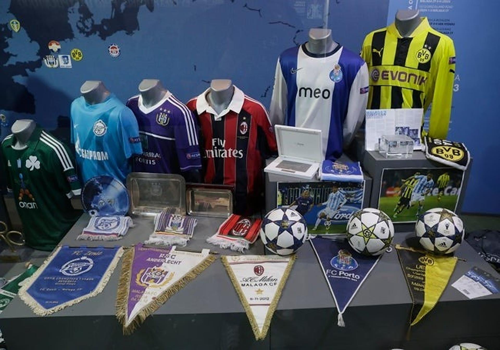 Without a doubt, the crown jewel is the section dedicated to the season when Malaga played in the Champions League. There are Malaga football shirts as well as of the six rivals they faced that season in Europe (Panathinaikos in the qualifiers, Zenit, Anderlecht, Milan, Porto and Borussia Dortmund).