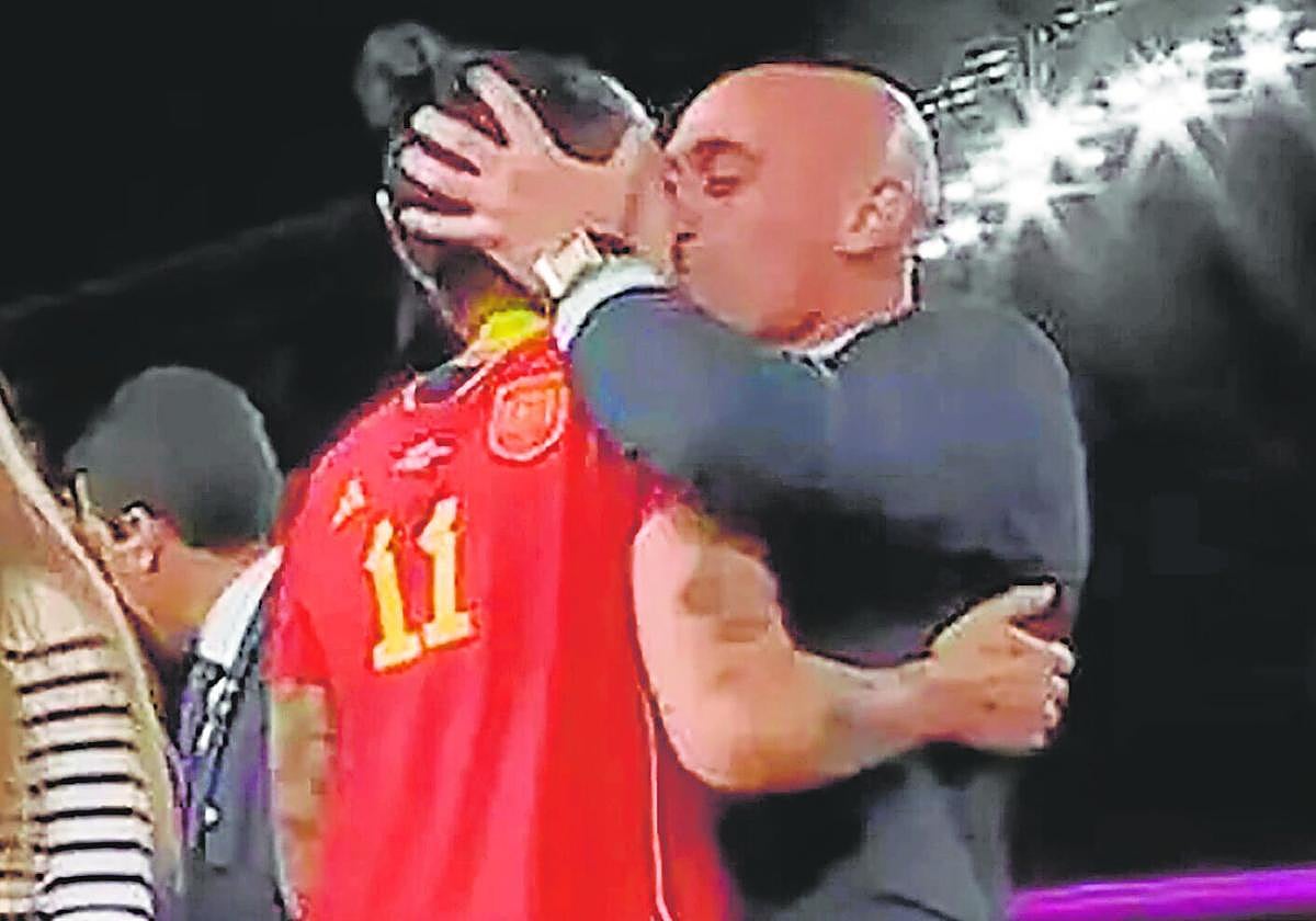 At the end of the game, he was on the field carrying Athenea de Castillo on his shoulder. He ended up in court for planting a smacker on the lips of Jenni Hermoso. He said it was a consensual "peck"; she said the president, her boss, "forcibly kissed" her.
