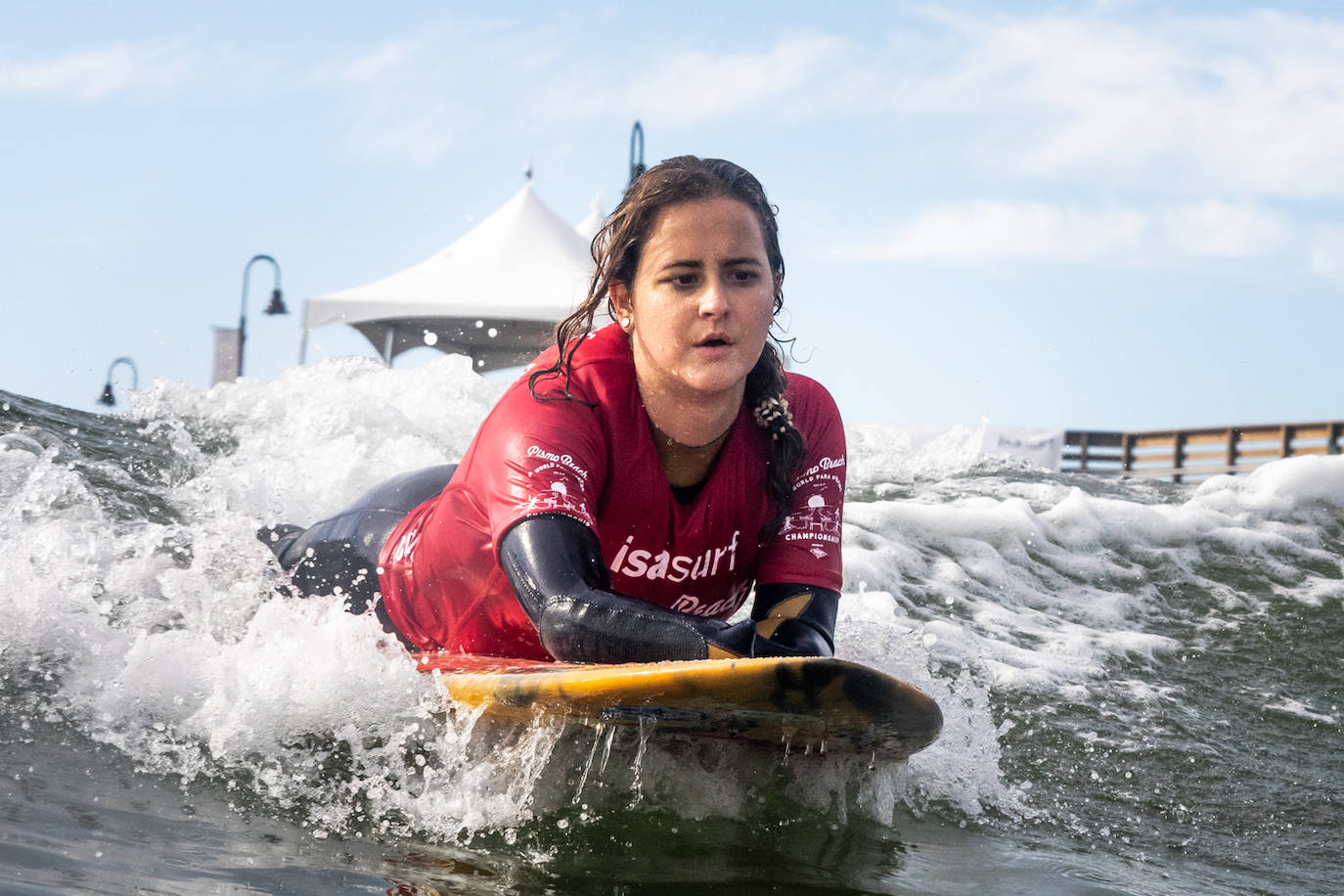 Two shades of blue form the fine line of the horizon between the sea and the sky. Sarah Almagro, who is just 21 years old, surfs the waves that rise above the line and lift her almost high enough to touch the clouds above, as she did at the ISA World Para-Surfing Championship at Pismo Beach in California. The colour of her silver medal shimmers as she picks it up with her prosthesis to show it to the camera with a huge smile on her face: “I wanted to win, I’m not going to pretend that I didn’t, but it doesn’t matter. To me, this silver still feels like gold,” she says.