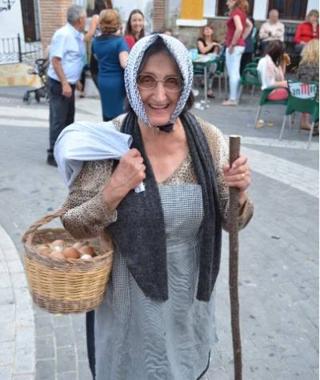 The locals dress up in old, worn clothing to look like country folk from years gone by.