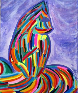 She is also influenced by her love of cats. Manuela, who lives in La Cala de Mijas, has a series of paintings of felines, a few of which can be seen in the exhibition, in a variety of styles. Always painting with acrylics, her brightly-coloured artworks feature different brush strokes which create striking images of cats.