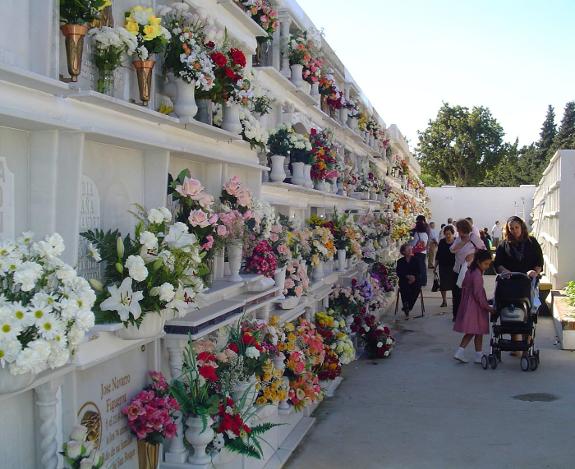 Across the whole of Spain, the 1st November is an important day. It is Día de Todos los Santos or All Saints' Day and in other Latin countries, Day of the Dead, but it isn't a macabre event in any way. It is the day when families remember loved ones who have passed away and get together in cemeteries to visit the resting places of their relatives. Many spend a few days beforehand cleaning, painting and laying fresh flowers around the niche in preparation for the special day.