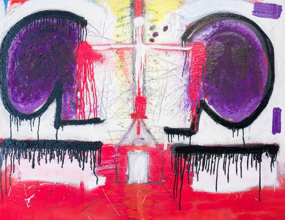 The central piece of the exhibition is titled I've Given Enough, a painting that questions the art of bullfighting. The piece shows a bull armed with a gun, which the artist says "levels out an unequal scenario and allows the bull to have enough force to exert a win in this unfair fight".