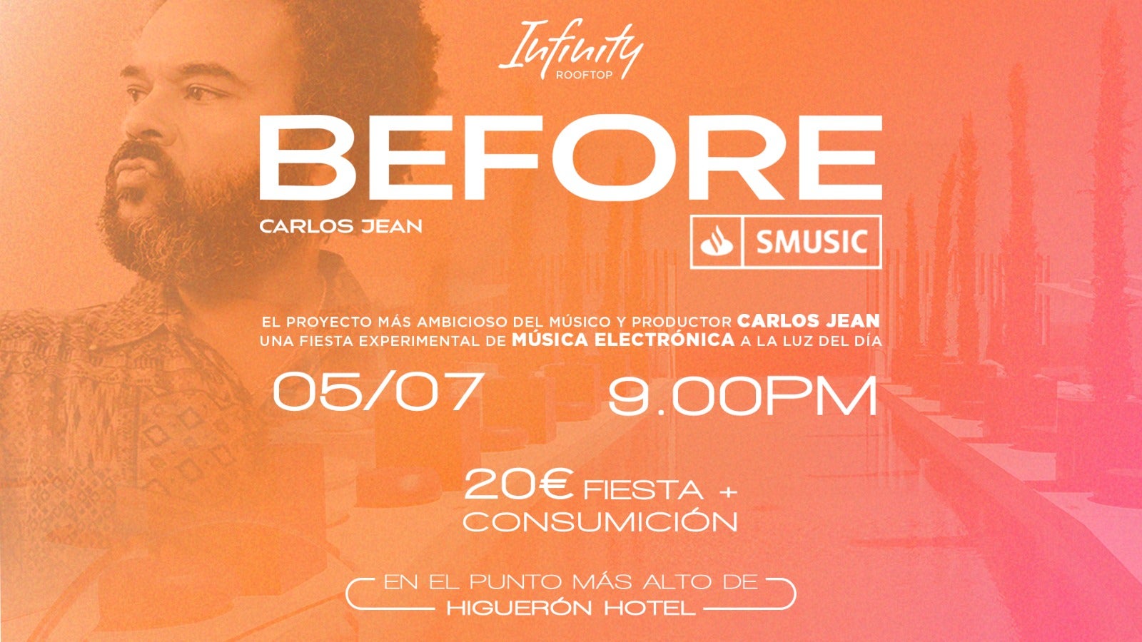 BEFORE by Carlos Jean arrives at the Infinity Rooftop, the highest point of the Higuerón Hotel in Fuengirola, with a musical and visual proposal that transforms the sunset into an unrepeatable celebration